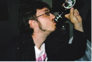 ..okay, they didn’t call it an ‘extravaganza’, that was my bit.  But there was booze and cheese, you bet!  And you’d better believe I stuffed myself with as much as two hands could cram into a waiting orifice, as taught by the prophet Henry Rollins.  All right, it wasn’t exactly the social event of the season, or even the week, but I DID get to rub elbows with my fellow bloggers (and oh, what wrong turns I must have made in my life to be referring to others as ‘my fellow bloggers’…sigh), elbow patches and all.  I chatted a bit with Kurt Fitzpatrick, the last straight man in theatre, and Wayne C.  Met Jamine the Yoga Teacher and Evan Thornton , and even got to high-five with Margo Mac herself!!  The result of which is I am now 10% cooler.
