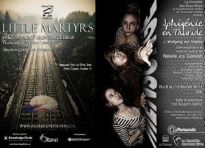 A couple I’m personally very excited about…Fringe overlord Natalie Joy Quesnel directs the French Euripedes adaptation IPHEGENIE EN TAURIDE at Academic Hall ( or Salle Academique…I should really be practicing)from 8th to 11th. It sounds fantastic, and only 15 bones, so get your french on and go!