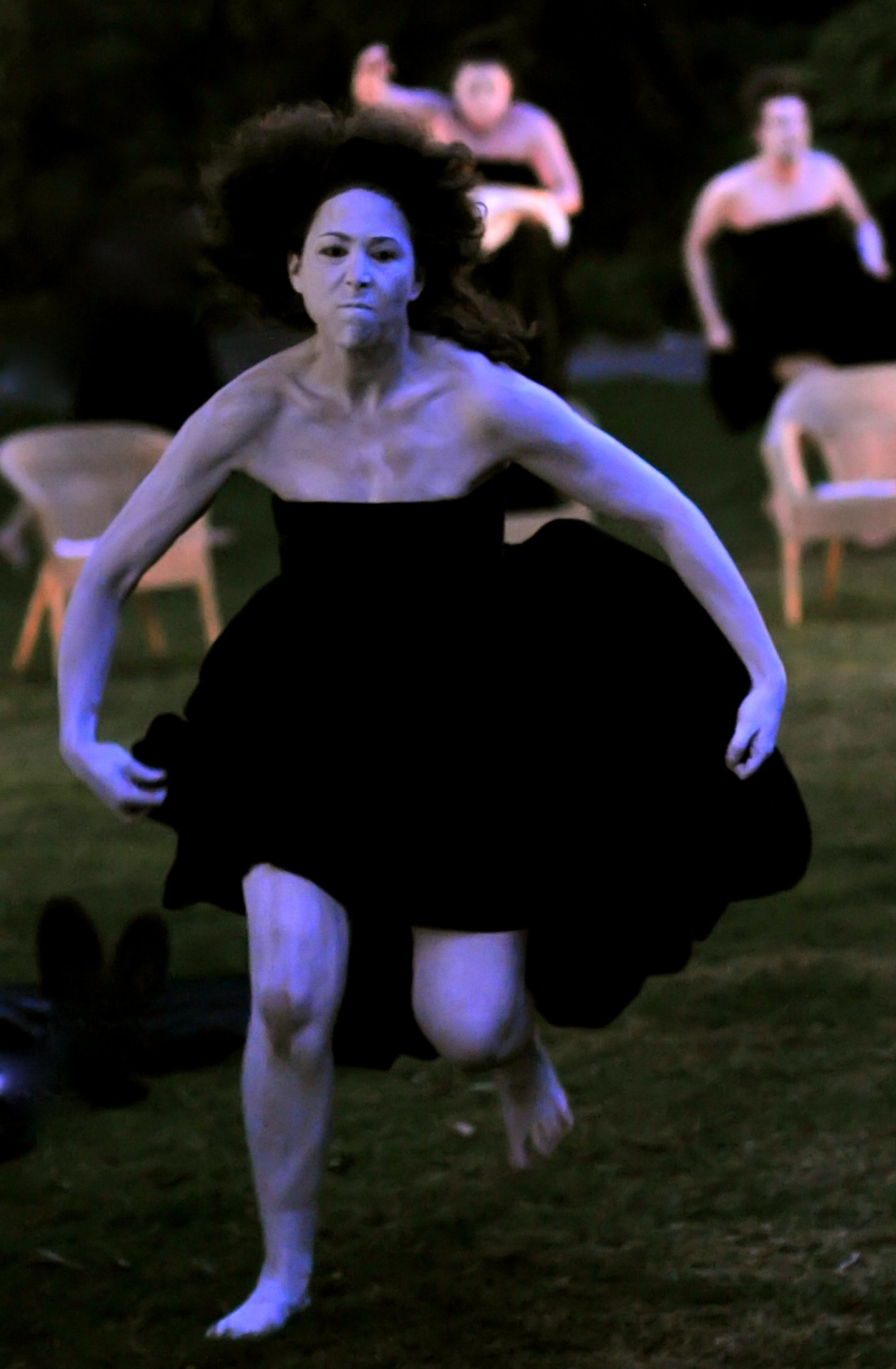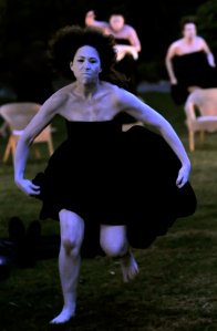 A group of elegant, black-clad ladies with powdered white faces awaited us, dancing slowly in a circle before politely noticing our presence. They flitted among the crowd, tucking people in and just generally being helpful, when the bell rang, the show began in earnest, and they took their own seats in a semi-circle on the grass. Strange silent rituals began then…an elegant tea ceremony, constantly interrupted by music and repeated, again and again. More rituals began, and ended strangely, events twisted, behaviours took dark, violent turns. The group turned on their own, shouts and primal screams echoes here and there, until…
