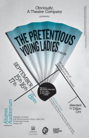 It was during the intermission of AMELIA that I spotted the ad, on the hypnotic little screen that I can’t god-damn well resist staring at whenever I see one, for a new show I hadn’t heard about…a production of Moliere’s classic THE PRETENTIOUS YOUNG LADIES by a new mob, Obviously, A Theatre Company. The show was at that classic Fringe venue Alumni Auditorium over Ottawa U way, so there was really no way I could resist. And when I discovered that my May Can boys Cory and Tony were in it? Well, hell. I was in like Flynn.