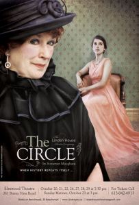 There’s a lot to love in THE CIRCLE, even without the free wine. Maugham’s script, with all its manipulation, sexual politics, ribaldry and heart, holds up well, and director George Stonyk does it justice. I’m glad I made the trek through rich-people’s land to Linden House. And I’ll be back. The show’s on until the 29th, so catch it if you can! Peace, love and soul,