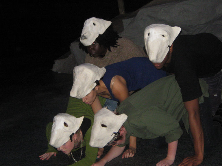 But that’s just fine, because it’s Evolution Theatre‘s new show we’re talking about, and who doesn’t want to get to that as fast as possible? Evolution is the bomb, plain and simple, and I was giddy as a midget to check out their first show of the season at their new home in Arts Court.Said show was Daniel Danis’ IN THE EYES OF STONE DOGS, translated here by human Babelfish Linda Gaboriau, and directed by Evolution co-founder Chris Bedford. Since Chris had the reins for LITTLE MARTYRS earlier this year, which is on my short list for fav’rit show this year, I was excited. Add to that the likes of Andy Massingham and Catriona Leger along for the ride, AND the new graduating class of the Ottawa Theatre School filling the onstage ranks…that’s a good recipe right there, folks.