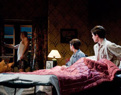 The script is fast and funny, peppered with some particularly sharp one-liners that the cast for the most part nails, and when the tale turns to the heavy stuff, it never feels forced…it flows, just like it should.  Batstone and Stewart particularly shine in a memorable sitting-room confrontation in Act Two.  And Nyhuus and Djukic as plucky Jay and Arty manage the tough task of anchoring the entire production splendidly.  I KNEW them kids were the goods when I met them at the audition…glad I was right.