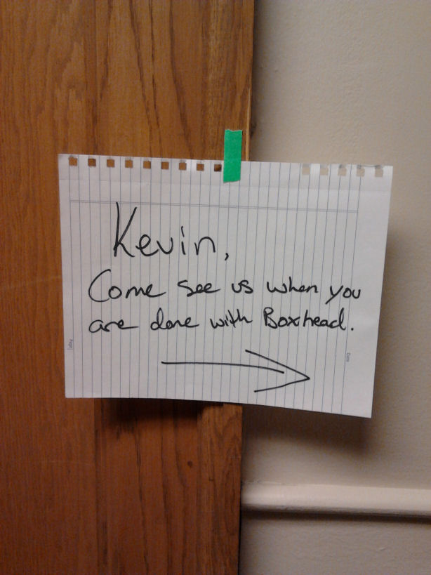 Which was FINE. I prepped a few questions, had lunch with my folks, missed the text Nancy sent asking if I could come in early to interview the gang from Boxhead first…
