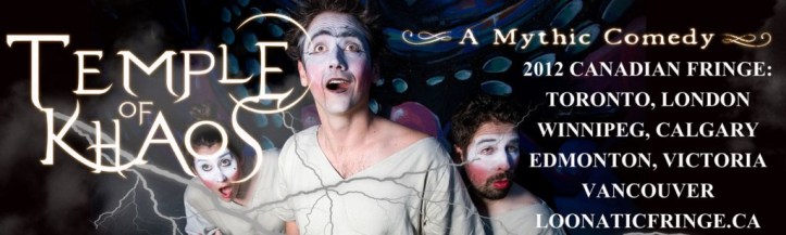 – TEMPLE OF KHAOS by Daniel Nimmo, at the Tarragon Extra Space. I saw the force of nature that is Daniel Nimmo a couple years back in Ottawa, and couldn’t wait to see him in action again. This time, he brought friends, in a combination play/improv/madhouse romp that must be seen to be believed. Based loosely around a story about a magickal hero being summoned to destroy a terrible monster, it’s mostly an excuse to let terribly talented performers misbehave in epic ways onstage, and it’s bloody fucking marvellous to behold. I’m not entirely sure who the lineup was in Toronto, or if they’ll be travelling with him on tour, but I suspect the Nimmo will be able to find like-minded lunatics wherever he goes. Theatre of the absurd at its absurd-est.