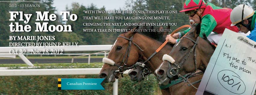 The downside being, I’m way behind now with this review! And I’m off to the next show in an hour and a half! No worries, eating is for the weak, everyone knows that. All this lad needs to keep himself going it some quality live theatre, and the double-helping I got a few days back should be enough to tide me over til Xmas. And by double, I mean I literally saw this show two times and two days in a row (one was my volunteer shift at the Great Canadian Theatre Company, for the preview showing), and then back again for opening night. And I can very honestly say not one moment of Marie Jones’ FLY ME TO THE MOON got stale on second viewing. I’m pretty sure I’d have no problem with a third…which is good, since I have another shift booked on the 18th.