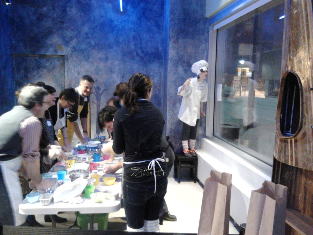 …oh right, the PARTIES! That’s right, there were not one but TWO Undercurrents shindigs, and yours truly (not exactly a social butterfly, but maybe sort of a social parasite or barnacle or something) was at both of them. The first one, the ‘opening’ party, took place upstairs at the GCTC on the first Saturday. DJ AL Connors was spinning his usual fine tunes, and a sweet spread of schwarma fixings was laid out for the eating. I’d already stuffed myself earlier on at the FACE2FACE closing party at Arts Court (Social parasite, definitely), where I’d come from with Ingrid and Kathleen. I soon joined fellow superfan Rich Hemphill in some oversized bottles of Beau’s, but not before experiencing the secret, final performers of Undercurrents 2013…Two Little Birds and RECESS. Travelling through the crowd with an oversized fortune-teller (or Cootie Catcher, or one of the other dozens of names it’s known by), the Birds cornered various partygoers to help them navigate their fates. That’s right, folks…if you missed this party, you didn’t experience ALL the theatre that Undercurrents had to offer this year. Sneaky, hey? After receiving my commemorative catcher, I settled in to the party and had some fun…okay, I wallflowered it for a spell and then embarrassed myself on the dance floor, but who’s keeping track? I ended up splitting after last call with some of my future castmates (more on that another day) and vaguely recalling having a great time.