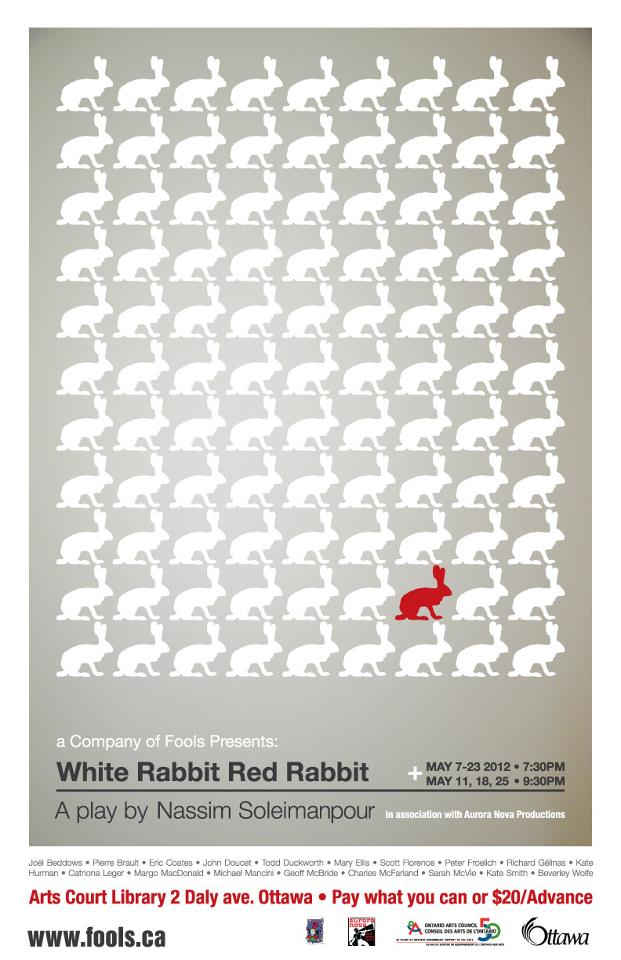 WHITE RABBIT, RED RABBIT at the Arts Court Library, from a Company of Fools. The Fools get serious with this groundbreaking play, featuring a new actor doing a cold read every night. Check the schedule and pick your fav’rit performer to turn out for! From the 7th to 25th.
