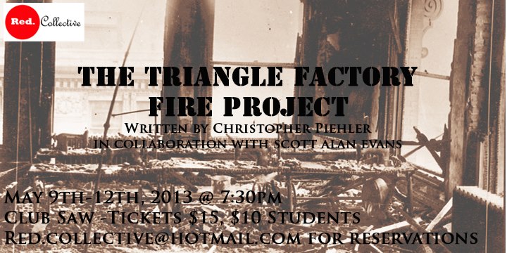 But I’m getting off topic, and I’m already late, so I’d better get cracking. The show from a couple nights ago now was the latest from those subterranean SAW dwellers in the Red.Collective, with their new ensemble production of THE TRIANGLE FACTORY FIRE PROJECT by Christopher Pielher (with Scott Alan Evans). Partly verbatim from actual firsthand accounts, and I’m assuming partly created as well, this ‘project’ tells the terrible story of a factory fire in New York 1911. Teeming with low-paid female immigrant workers (fresh off a mostly unsuccessful strike action), and equipped with about as many safety features as you might expect from a turn-of-the-century sweatshop, when fire breaks out the death toll is catastrophic, and swift. The resulting fallout, however, take years to have its full impact felt.