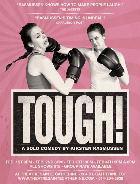 Thanks Sally. Hopefully, you’re getting what a fantastic time this workshop was…I learned buckets about just how much work goes into making it look easy, and the day wasn’t over yet. When the shop ended, I broke away for some poutine and bloggery before heading right on back for Kirsten’s one-woman show, TOUGH! I’d heard and read nothing but good things about this one, and was pretty damn giddy to see it at last. Starring Miss Kirsten as a whole mess of characters (seeing this show really drove home a LOT of what she taught us earlier that day), the show centers on the stories of Amanda Pain, a novice boxer, and Lucy Diamond, a nightclub singer looking to get out from underneath the shadow of her famous crooner Dad Dickie. The two stories are connected in a wonderful way that reveals itself over the course of this, just about the funniest show I’ve ever been lucky enough to see. Kirsten is utterly amazing in this show, like if Jayson McDonald and Carol Burnett ran really fast into each other and merged into one superbeing. Along with our two main characters, Kirsten brings to life plenty of other memorable folks…I was plenty tickled with the coach and bartender, myself. And Esther…oh, my. I have never laughed so hard at a character’s one second of stage time in my life, and don’t expect to ever again.
