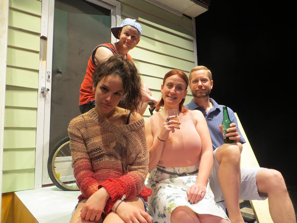 But to business! A couple days past I got to head down to the Gladstone Theatre in the awesome company of my classmate (note: I will never stop calling you, or the others, that) Kathryn to check out the latest from Plosive Productions, Lisa D’Amour’s DETROIT. Directed by Chris Ralph, the Gladstone gang kicked off 2014 with the Canadian Premiere of this deadly funny take on American suburban life and I’m pretty glad they did. The play follows two families living backyard to backyard in the very beleaguered indeed titular city. Mildly affluent Mary and Ben (Teri Loretto-Valentik and David Ross Whiteley) enjoy a good backyard BBQ and the quiet life, but are hoping their luck will turn around since Ben got laid off at the Bank. Newcomers to the area Sharon and Kenny (Stephanie Izsak and David Benedict Brown) have long since tossed the notion of luck out the window, existing from day to day without a stitch of furniture to their name. A random invitation from Mary to the new kids starts off their unlikely friendship, which will involve a lot of laughs, drinks, a little fire, and at least one trip to the hospital. Oh yes…there will be blood.