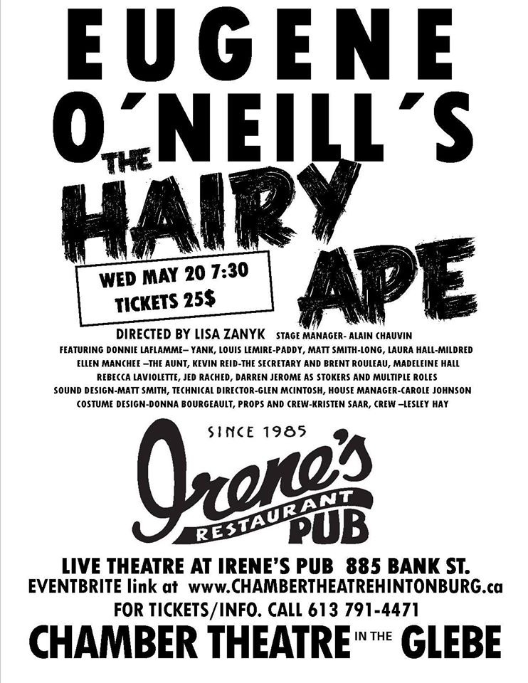 THE HAIRY APE at Irene’s Pub, from Chamber Theatre Hintonburg…one night only!!