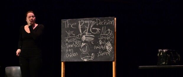 After a blissfully uneventful bus ride down to the Exchange I made it over to the MTC up the Alley to treat myself to a re-view, my 1st of the year. Now, I hadn’t seen this one for some time, it must be said, during it’s inaugural run back at Ottawa Fringe when it was still called WORKING TITLE: UNDECIDED. Since then, dynamo Tamlynn Bryson has renamed the show (IN)DECISION and it is actually even more fun than I’d remembered. The audience joins Tamlynn as an internal struggle is acted out, weighing the pros and cons of a singularly important decision she is suddenly being forced to make. It’s a wild and wacky look into a highly stressed inner monologue, but mostly its just a treat watching Tamlynn own a stage in the hilarious and engaging way she does so well. It was a rowdy and silly delight, and a perfect way to start off a day of Fringing.